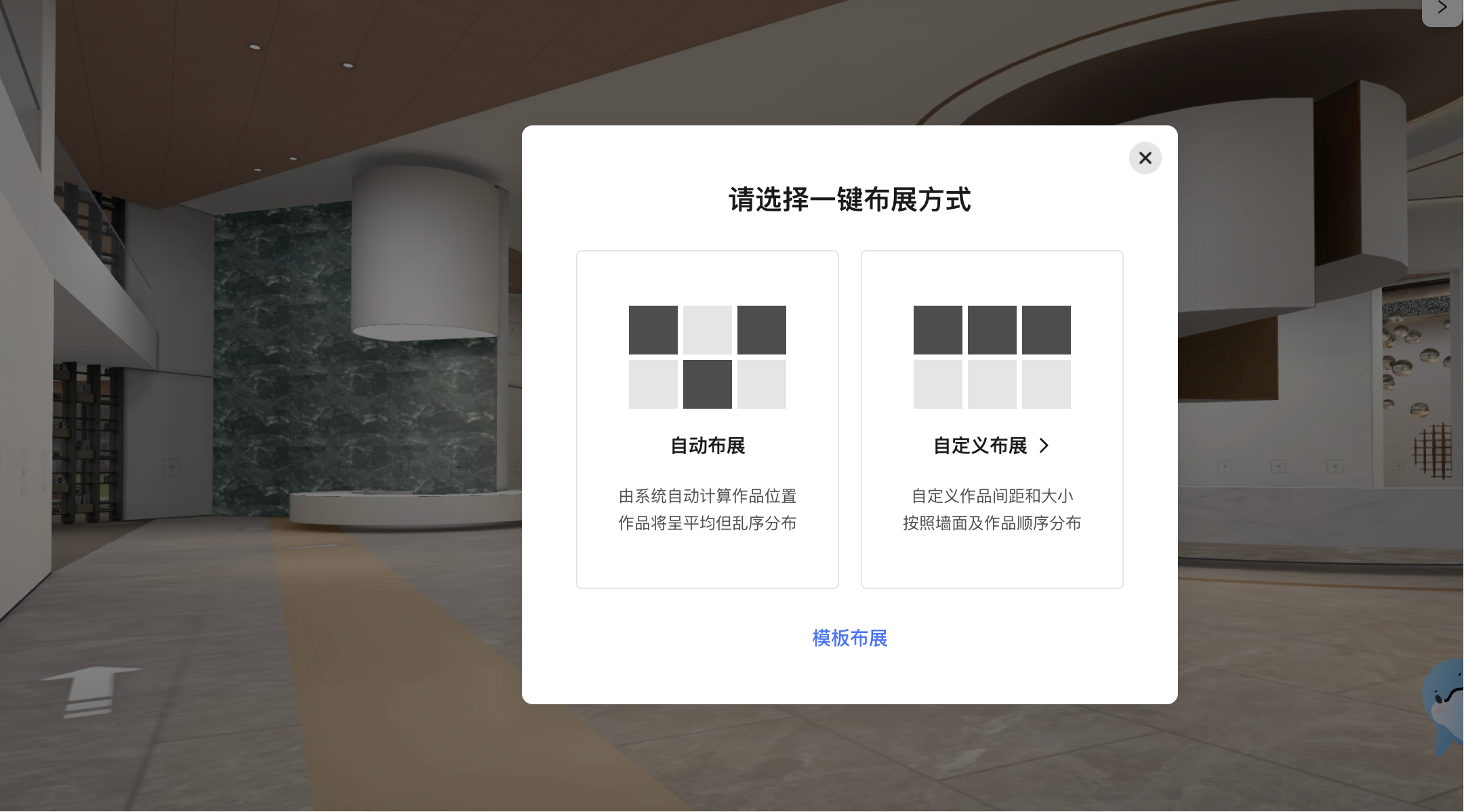 大鱼云展提供了多种展厅模板,每个展厅模板里自带观展动线,这些动线均由专业人员根据不同展厅布局预先设计好,策展人可根据展览主题和风格进行布展。