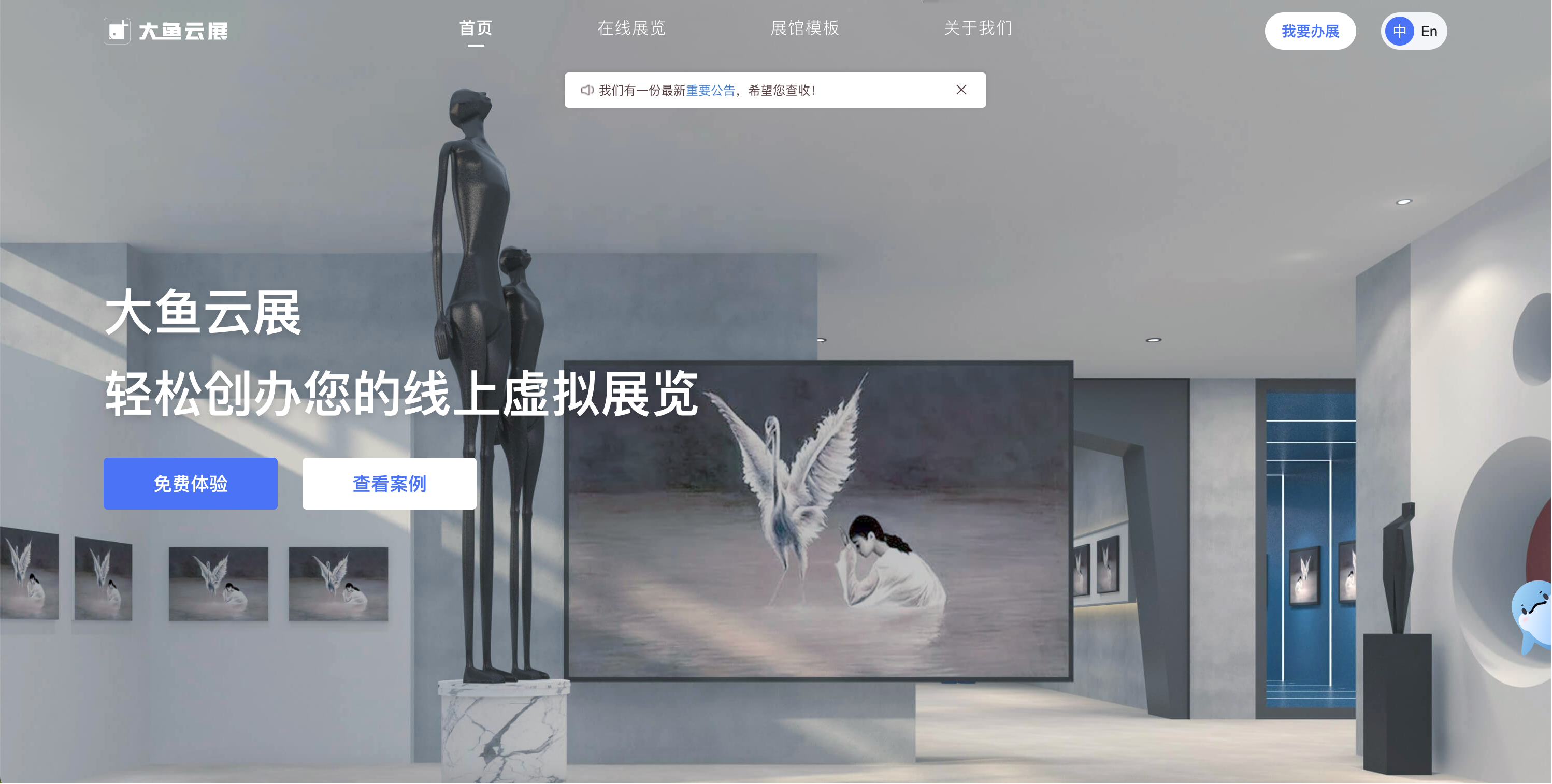 及目科技大鱼云展以其创新的功能和技术优势脱颖而出,为用户提供了一个连接虚拟与现实的桥梁。作为虚拟展览领域的领军平台,大鱼云展不仅展现了技术与艺术融合的可能性,也为数字化时代的艺术展示和传播树立了新标杆。
