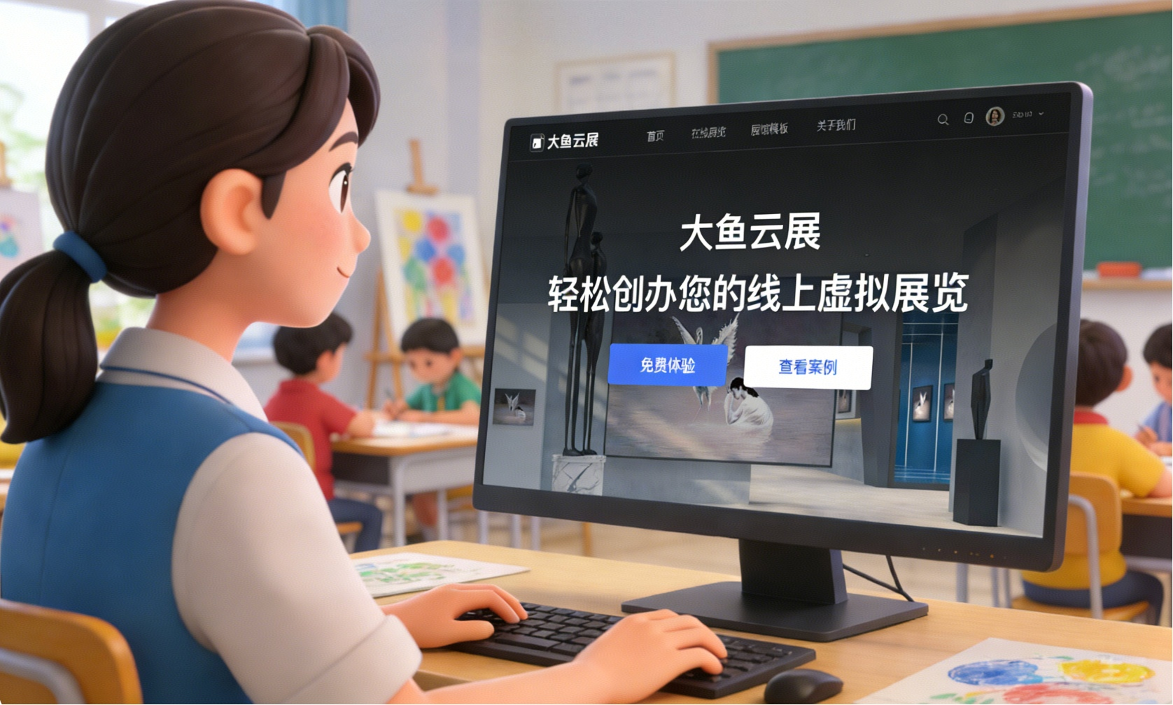 在传统美术课堂中,学生作品的最终归宿常常是教室后墙、校园走廊或文件夹中,这种展示方式受限于空间与时间,作品难以得到充分呈现,教学互动也往往停留在简短的口头点评。随着教育数字化的深入,美术教学正在寻求一种能够延伸课堂边界、留存创作过程并促进深度交流的展示方式。以大鱼云展为代表的线上三维展览平台,凭借其便捷的构建能力与丰富的交互特性,为日常美术教学提供了新的可能性。它让每一堂美术课、每一个创作主题的成果,都能拥有一个专属的、可沉浸式体验的线上展示空间,从而为教学注入新的活力。